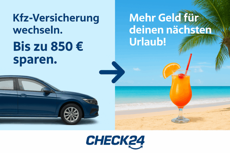 Kfz-Versicherung wechseln und bis zu 850 € sparen – perfekt, um mehr Geld für deinen nächsten Urlaub zu haben. Jetzt vergleichen, sparen und die Reisekasse füllen. Ideal für alle, die smart sparen und mehr verreisen wollen.